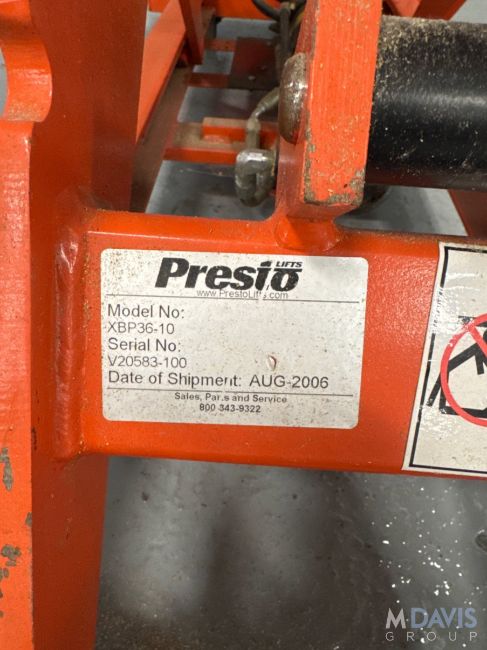 Presto Electric Portable Scissor Lift Platform, Model XBP36-10, S/N V20583-100, 1,000 lb. Capacity, 48 L x 24 W x 36 H, with Controller, (INV. #37671)(LOCATED @ MDG SHOWROOM PGH, PA), (Rigging, Handling, Loading & Site Mgmt Fee: $50)