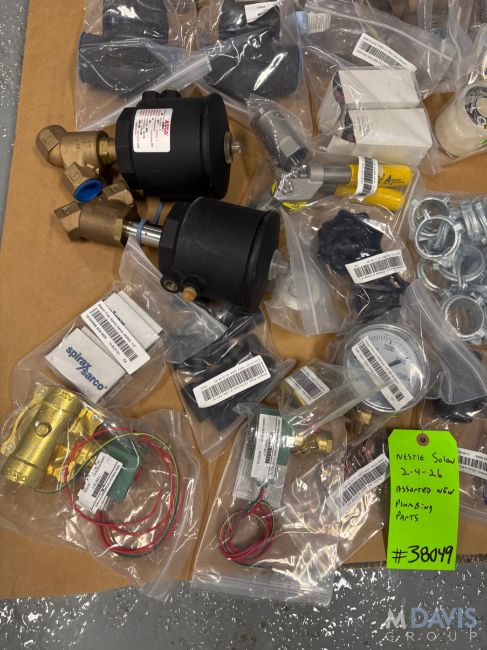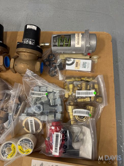 Pallet of New Assorted Plumbing Parts, Including Brass & S/S Valves, Brass & Steel Check Valves, Asco Valves, Relief Valve, Hansen Coupler Fittings, Barksdale Control Valves, Pressure Gauge, Switch Lever Parts, Clamps, (INV. #38049)(LOCATED @ MDG SHOWROOM PGH, PA), (Rigging, Handling, Loading & Site Mgmt Fee: $100)