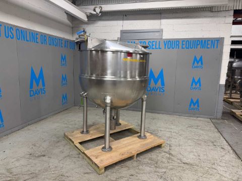 GROEN 300 GAL. S/S KETTLE, NEM-300, NATL BD #: 88258, TYPE 316 S.S., S/S HINGE LID, WITH BOTTOM MOUNTED S/S BOTTOM MOUNTED AIR VALVE, MOUNTED ON S/S LEGS (INV #32262) (LOCATED @ MDG SHOWROOM - PITTSBURGH, PA)(RIGGING, HANDLING, LOADING & SITE MGMT FEE: $1,000)