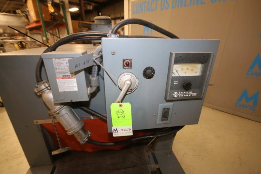 Shanklin Shrink Wrap Heat Tunnel, Model T-8, SN T8050, 23" W Belt, 12" H Product Height, 47" L Tunnel, 27", H Conveyor, (Aprox. Overall Dims. 77" L x 40" W x 68"H), 230V with Controls (INV#93179) (Located @ the MDG Auction Showroom in Pgh., PA) (Handling, Loading & Site Management Fee: $50)