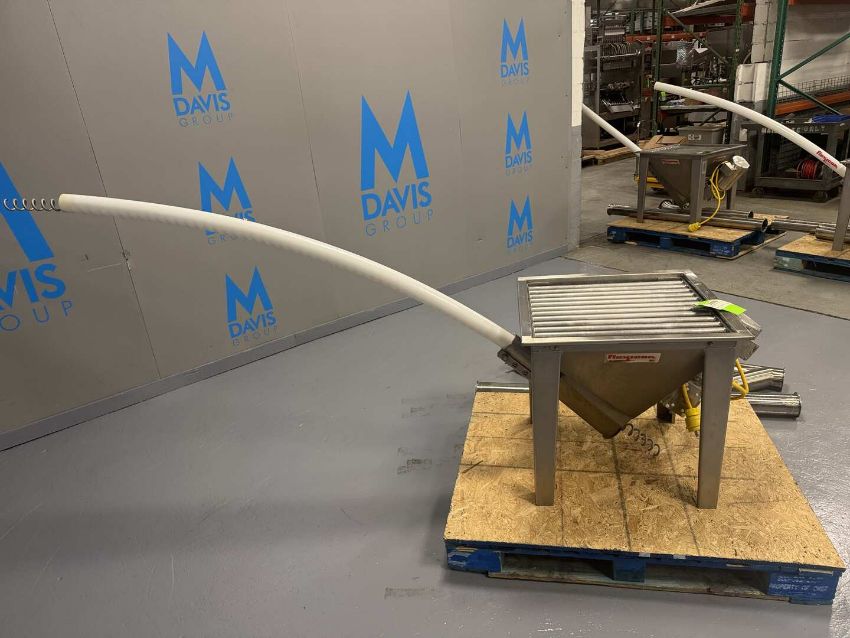 FLEXICON FLEXIBLE S/S SCREW AUGER CONVEYOR HOPPER WITH 24" w X 24" w x 18" D HOPPER, S/N 84467, WITH BALDON .5 HP / 1765 RPM S/S MIXER DRIVE MOTOR, 230/460V, WITH TOP SAFETY CAGE, INCLUDES 8 FT L X 2" SCREW AUGER & 4" PIPE CONNECTORS, (INVOICE #30650) (LOCATED IN PITTSBURGH, PA), (RIGGING, HANDLING, LOADING & SITE MGMT FEE: $100)