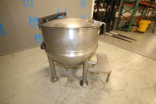 Groen 150 Gallon Jacketed S/S Kettle, Model 150D, SN 75696-1-1, with Hinged Lid, 2" Threaded Bottom Connection, S/S Legs, Max WP 100 psi @ 338 F, 2012 Mfg, (INV#88563) (Located @ the MDG Auction Showroom in Pgh., PA) (Skidding, Handling, Loading & Site Management Fee: $300)