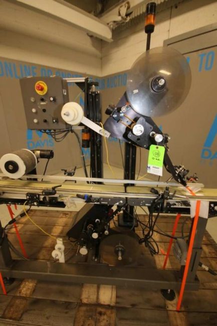 Versapply In-Line Labeler, with (2) Heads Models 9100L & R-40PK, SN 98472 & 98692-01, with 7 L x 6" W x 34"H Conveyor, 115V (INV#89047) (Located @ the MDG Showroom in Pgh., PA) (Skidding, Rigging, Loading & Site Management Fee: $100)