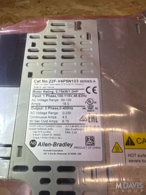 (2) New Allen Bradley PowerFlex 4M 1 hp AC Drives / VFDs, Cat. # 22F-V4P5N103, Series A, Input 90-126V 1 Phase, (INV. #37963)(LOCATED @ MDG SHOWROOM PGH, PA) (Rigging, Handling, Loading & Site Mgmt Fee: $25)