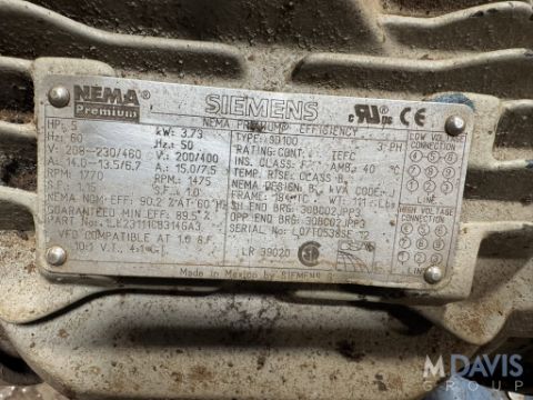 M/N QS124A, S/N 8189950010, WITH 1475 RPM MOTOR, 208-230/460 VOLTS, 3 PHASE (1ST FLOOR TANK FARM ROOM - HAZLE TOWNSHIP, PA) (RIGGING, LOADING, & SITE MANAGEMENT FEE $325)