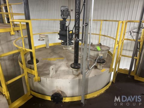 TANK DIMS.: APROX. 9 FT. DIA. x 25 FT. TALL, WITH VERTICAL & TOP MOUNTED AGITATION, WITH TOP SAFETY RAILS (FINISHED LIQUOR TANK) (430-A-833)(FOR RIGGING, LOADING, & SITE MANAGEMENT FEE, PLEASE CONTACT TOMMY PAULONE DIRECTLY AT 724-771-7721 OR TOMMY@MDAVISGROUP.COM)