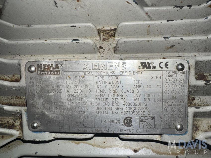 M/N QS1224A-CHC1, S/N 7687810074, WITH SIEMENS 1775/1475 RPM, 208-240/480 VOLTS, 3 PHASE (LOCATED ON GROUND FLOOR - HAZLE TOWNSHIP, PA)