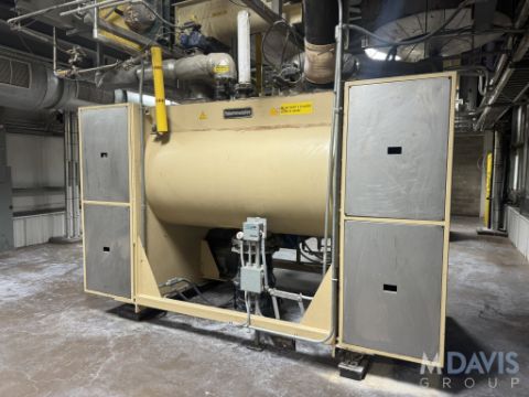 WITH DUAL JACKETED MIXING CHAMBERS, INCLUDES TOP INFEED PORTS & SINGLE PNEUMATIC BOTTOM DISCHARGE, 75 HP MOTOR, 208-230/460 VOLTS, 3 PHASE, & MILD STEEL PLATFORM (4TH FLOOR - LINE 2 WET & DRY INGREDIENT INTRODUCTION ROOM - HAZLE TOWNSHIP, PA) (RIGGING, LOADING, & SITE MANAGEMENT FEE $7,150)