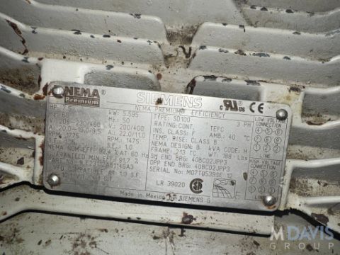 M/N QS124A, S/N 8294900417, WITH SIEMENS 1775/1475 RPM, 208-240/480 VOLTS, 3 PHASE (LOCATED ON GROUND FLOOR - HAZLE TOWNSHIP, PA)