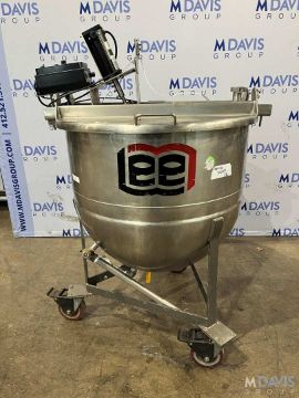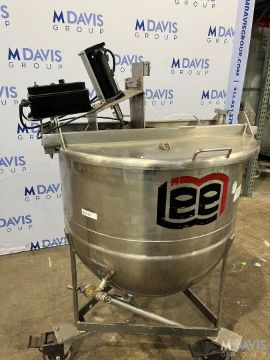 LEE STAINLESS STEEL KETTLE, S/N S/N:433P, LEE STAINLESS STEEL KETTLE WITH TOP AGITATION INTERIOR DIMENSIONS:32W X 28 S/N:433P. H IN.109 OUT.078 CAP:75GAL, (LOCATED @ THE MDG AUCTION SHOWROOM 2.0 IN MONROEVILLE, PA) (RIGGING, HANDLING, LOADING & SITE MGMT FEE: $300.00)