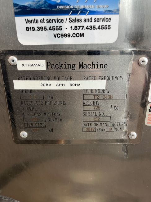 MODEL:TSS-240B POWER:4.5W SERIAL NO:152 AIR CONSUMPTION:400 NL/MIN FILM SIZE:240MM 208:V 3:PH 60:HZ, (RIGGING, HANDLING, LOADING & SITE MGMT FEE: $600.00)