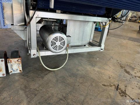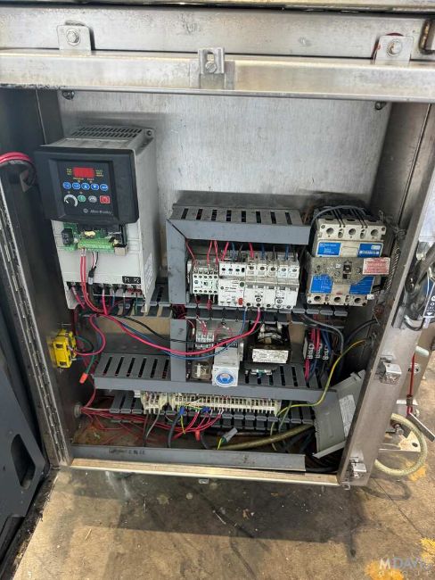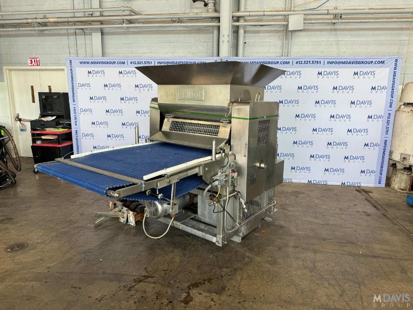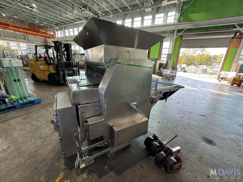 BRIDGE S/S PATTY FORMER, WITH APROX. 37-1/2 W PLASTIC INTERLOCK BELT, WITH S/S CONTROL PANEL WITH ALLEN-BRADLEY VFD, WITH CASTERS (PATTY FORMER #3), (RIGGING, HANDLING, LOADING & SITE MGMT FEE: $1,200.00 USD)