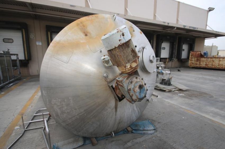 Walker Aprox. 1,500 Gal. Dome-Top Cone-Bottom S/S Processor, Model PZ-CB, S/N 25-00-304SS SP-6942 with Bottom and Side Scrape Surface Agitator and Dual Sprayball, Jacket 100 psi @ 250 Degree with Ladder (Aprox. Dimensions 96” H x 66” W), (Tank #PT-19), (Located Outside)
