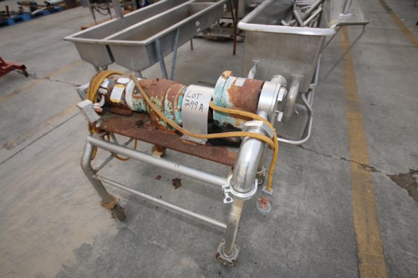 Tri-Clover 2 hp Positive Displacement Pump, Model PRZ250T-U-UH4-S-L, S/N517986-01 with 3” Threaded S/S Head and Baldor 3450 RPM Motor, Mounted on Portable Frame, (Located Outside)