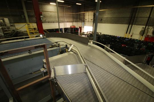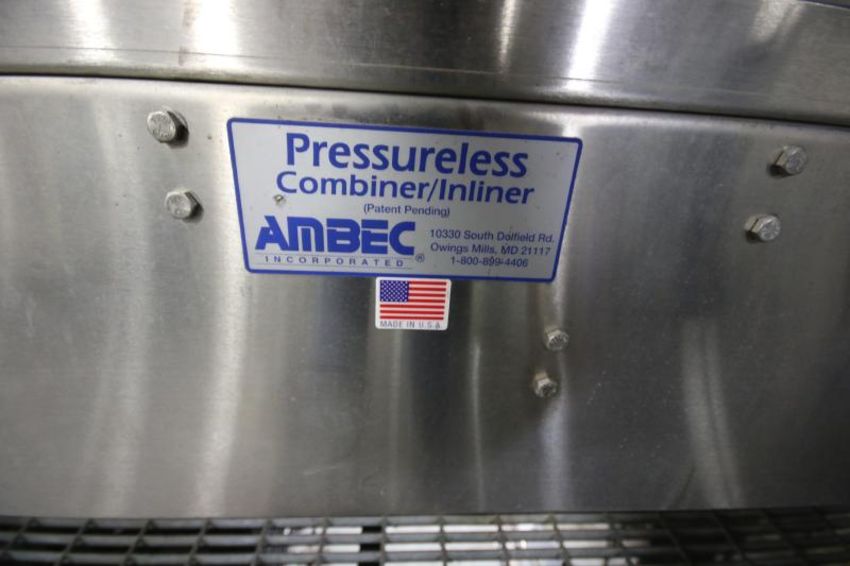 Ambec All S/S Combiner/Inliner/Single Filler, Aprox. 50 ft. L x 4" W Up to 50" W with Adjustable Lane, S/S Legs, (4) SEW Drives (Running Out of Depalletizer Into Airveyor) ***SUBJECT TO BULK BID*** LAN MD