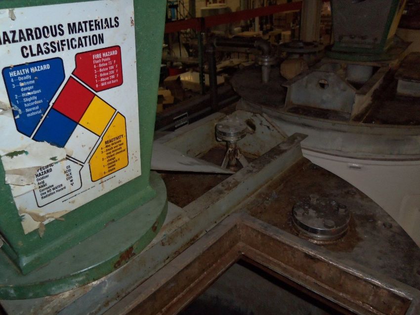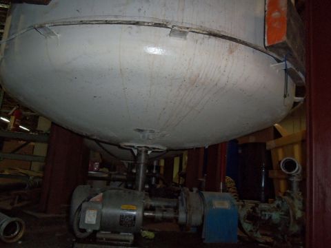 (2003) Modern Welding 1100 gallon stainless steel jacketed tank with sweep agitation --  Max Working Pressure 30 PSI at 200 F -- Min. Design Metal Temp -20F at 30 PSI on four I-Beam Legs - comes with a 10HP and 5HP drive motor currently a 5HP is used (Located in Iowa)****RIGGING FEE $800**** EUSA TANK 1