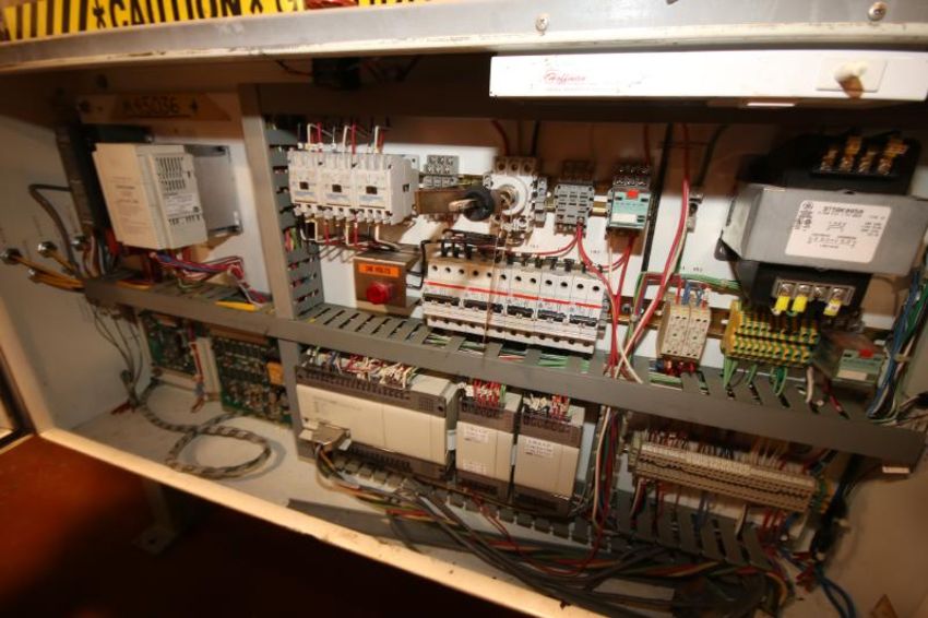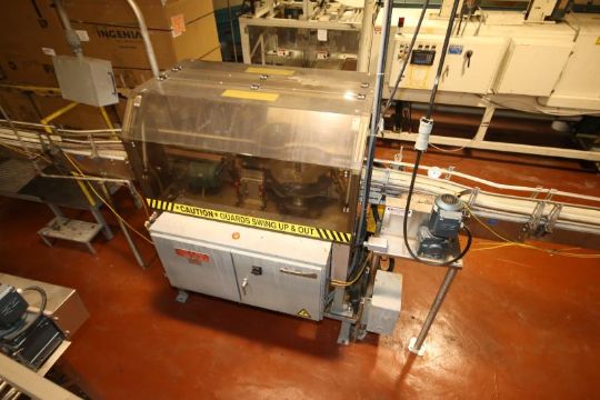 Trine In-Line Labeler, S/N 065M45036 with Slautterback Gluer, Change Parts & Mitsubishi Controls, Mitsubishi VFD with Top Smart Touch Display Set-Up with .5 Litre Change Parts (LOCATED IN LANDOVER, MD)***SUBJECT TO BULK BID*** LAN MD