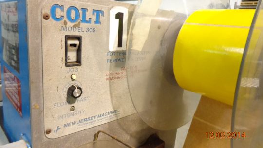 New Jersey Machine Colt Model 305 Label Applicator runs on 110V ($65 to palletize and load)LOCATED IN IOWA EUSA