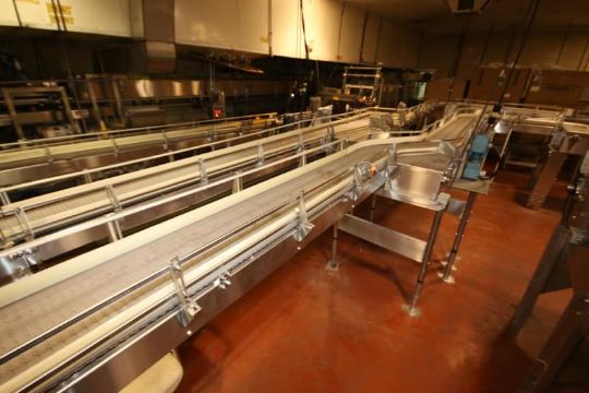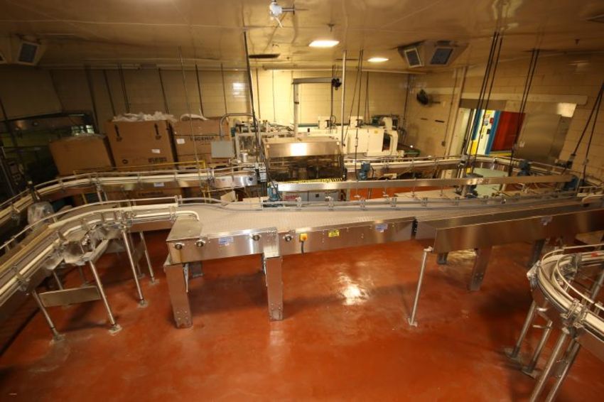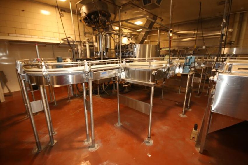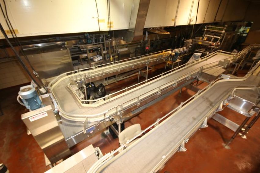 2000 Ambec Aprox. 175 ft of S/S Product Conveyor System with Plastic Chain, Straight & Curves, (15) Drives, Combiner, 3-1/4" W Up to 41" W (NOTE: Does Not Include Controls) (LOCATED IN LANDOVER, MD)***SUBJECT TO BULK BID*** LAN MD