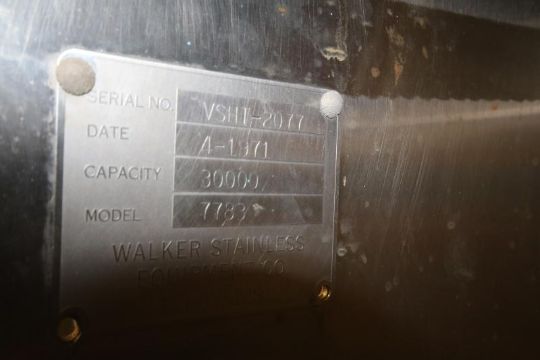 Walker 30,000 Gal. Insulated S/S Silo, Model 7783, S/N VSHT-2077 with Tri-Clover Air Valve (Dimensions 12 ft. Dia.) (Poly Water Silo #1) (FREE LOAD!!! TRUCK MUST BE PRESENT ON FRIDAY MARCH 27TH)