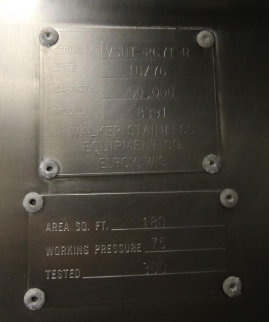 Walker 50,000 Gal. Refrigerated Chilled Water Jacketed S/S Silo, Model 8391, S/N VSHT-2671-R, with Tri-Clover Air Valve and Level Sensor (Silo RS17)