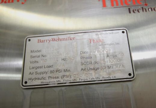 2009 Barry-Wehmiller/Thiele S/S Double Hydraulic Case Stacker, Model ES20A, S/N ES20A114 with Allen Bradley MicroLogix 1000 PLC Controls