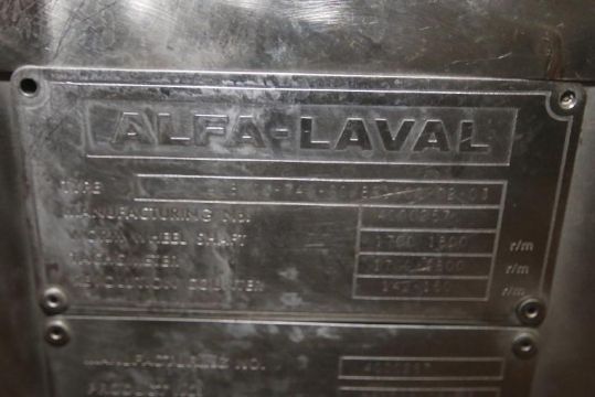 Alfa Laval CIP Separator, Type MRPX-418HCV74C60/881006-0203, Manufacturer #4000257 with Valves, Filter System and Allen Bradley SLC 5/04 CPU PLC with Panelview 550 Display, Y-Delta Drive, Includes Separator Service Tools, Spare Parts, includes Newly Rebuilt Motor (Hot Bowl Separator), (Operated on a 5,800 GPH or 100 GPM System), PM’s Performed Yearly by Sep Equip.