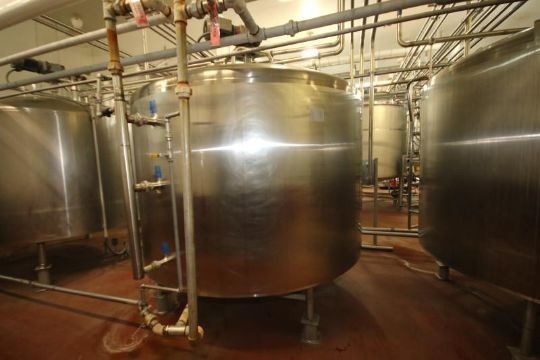 2002 Mueller 1,500 Gal. Dome Top S/S Processor, Model PCP, S/N 218035 with Agitator, Baffle, Sprayball, Tank Valve and Pressure Gauge, (Tank Dimensions Aprox. 98" W to 10 ft. H to Top of Agitator) (Buttermilk Tank Agitator #2)