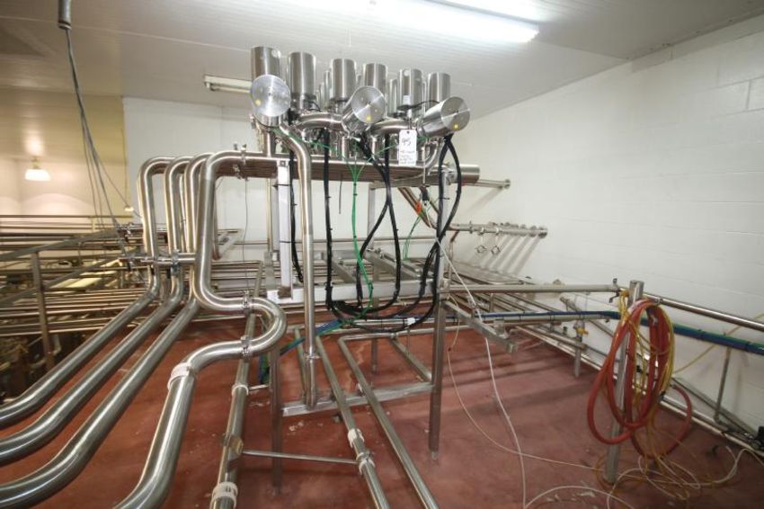 Valve Sudmo 2-1/2" Air Valve Cluster, Type DN2-1/2"PN6/1.4404 with Solenoid Control Panel, Allen Bradley Flex I/O 1794-GA16 includes (6) Anderson Pressure Sensor and S/S Stand (Located on Process Floor Mezzanine Platform)