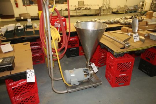 Tri-Clover 5 hp Portable Centrifugal Pump with 2" x 2" Clamp Type S/S Head and Leeson 1750 RPM Motor and S/S Funnel