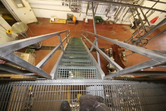 Aprox. 30 ft. L x 37" W x 12 ft. H 2-Bay Tanker Receiving Platform, Most Galvanized and Steel Constructed with Grate Decking, Handrail, Stairs, Supports and Yellow Gate Safety Doors