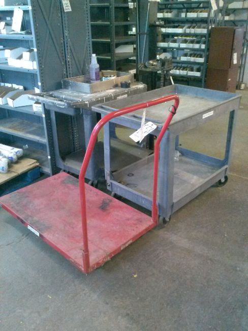 (3) Composite Parts Carts and Steel Warehouse Flat Truck