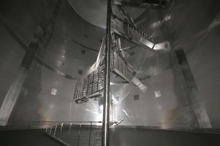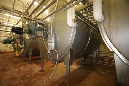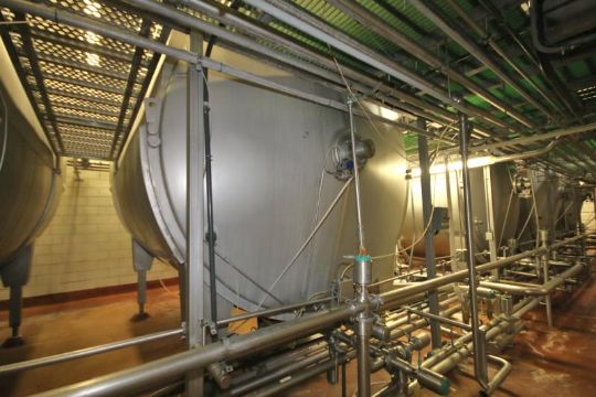 Tetra / Tebel –MKT 50,000 lb. OST Horizontal Enclosed Jacketed S/S Cheese Vat, Model 1973, S/N 9205613, Equipped with Dual Directional Agitators, Agitator Siphon Arm, Rennet Tank and Allen Bradley SLC 5/02 PLC Control Panel (VAT #5)