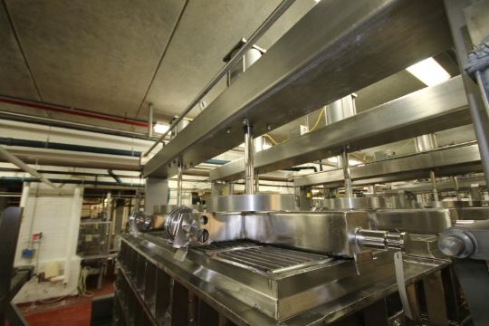 Tetra / Tebel –MKT- 800 lb. 4-Station Mold S/S Cheese Mold Press, Type 22X1, All S/S Pneumatic, S/S Drain Pans includes Controls - Capable of Pressing 8 Molds Per Cycle (Overall Dimensions Aprox. 10 ft. W x 9 ft. 8" H x 12 ft. L)
