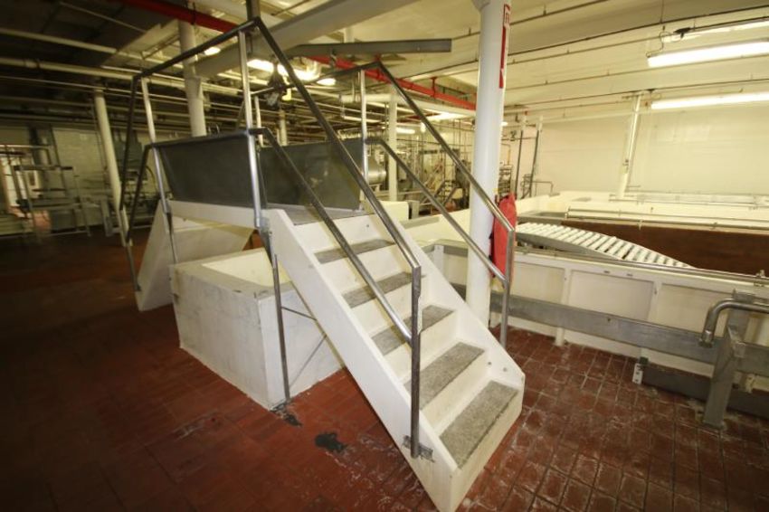 Aprox. 63" L x 32" W x 47" H Fiberglass Catwalk/Bridge with (2) Sets of Stairs, S/S Handrails and S/S Splash Guards