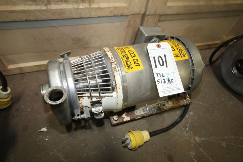 Tri-Clover Aprox. 5 hp / 3 hp Centrifugal Pump with 2" x 1-1/2" Clamp Type S/S Head and Leeson 3510 / 2920 RPM Stainless Clad Motor, 208-230 V, 3 Phase