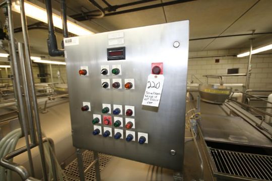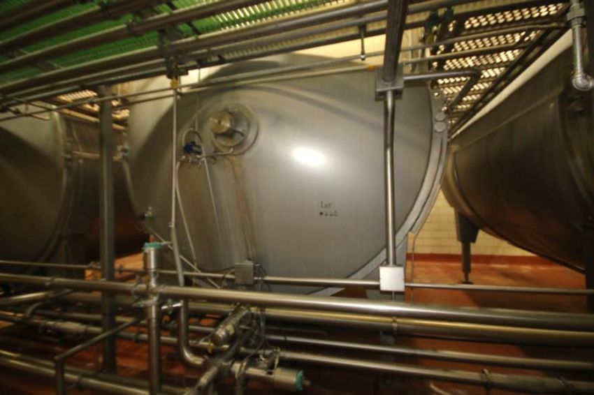 Tetra / Tebel –MKT 50,000 lb. OST Horizontal Enclosed Jacketed S/S Cheese Vat, Model 1973, S/N 9205612, Equipped with Dual Directional Agitators, Agitator Siphon Arm, Rennet Tank and Allen Bradley SLC 5/02 PLC Control Panel (VAT #4)