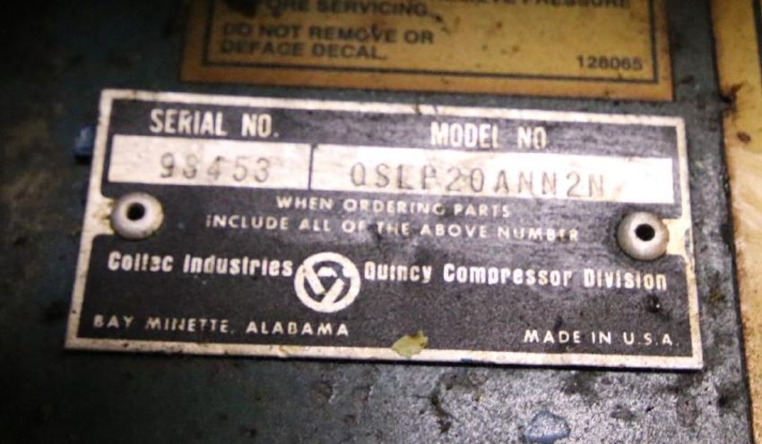 Quincy 20 hr Screw Air Compressor, Model QSLP20ANN200, S/N 98453 (Located in Shop)
