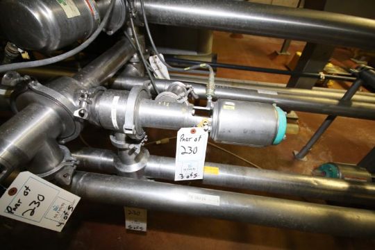 Tri-Clover S/S Air Valve Cluster for Vat #5 - Item #218 including: (1) 2-1/2" Model 761 and (2) 3" Model 761 Divert Valves; (1) 2-1/2" Model 761 Crossbody/Divert Valve and (1) 4" Model 161 Crossbody (Located Ground Level)
