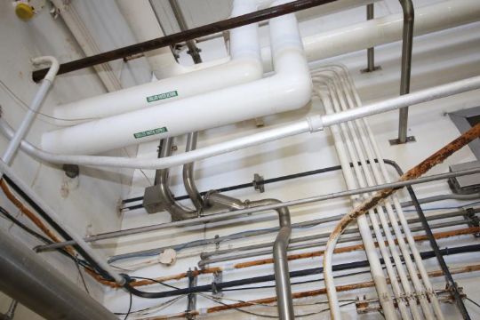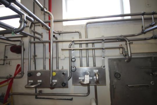 Remaining 1-1/2" to 2" Installed S/S Piping Throughout the Room including: (2) Flowverter Stations, Remaining Butterfly and Check Valves, Fittings and Hangers (NOTE: Does Not Include Previously Sold Items)
