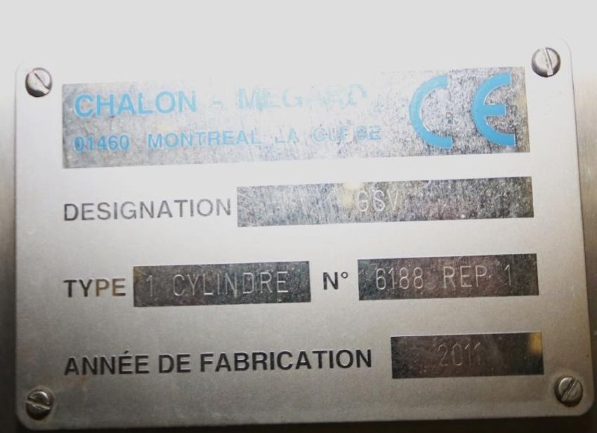 2011 Chalon-Megard R & D S/S Cheese Vacuum Molding System includes: S/S Vacuum Tower, with S/S Type Cylinder, S/N 6188-REP-1, Mils Vacuum Pump, Model EVISA E65-MV, S/N 13187; Mold Press Station, Type Suisse, S/N 6188-REP-3 includes S/S Mold Positioning Table with Teflon Mold - Aprox. 25" W x 30" L x 12" Deep with Controls