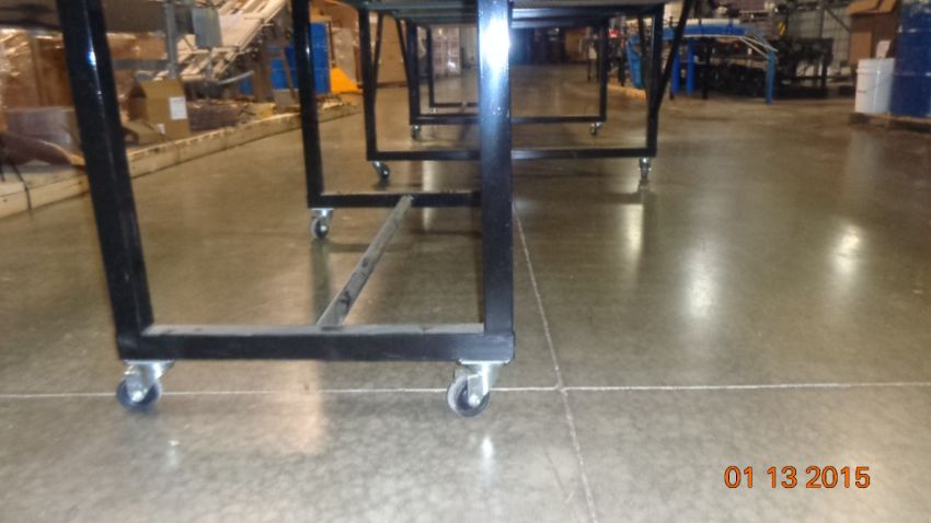 Packing Table with 20 ft Roller Conveyors in Three Sections (10 ft attached to Packing Table) and Two 5 ft Sections, On Casters, Width of Each Conveyor Approx 32" (LOCATED IN IOWA, RIGGING INCLUDED WITH SALE PRICE)***EUSA***