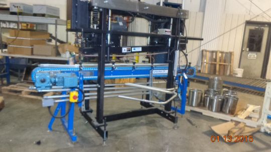 Powered Lid Closer with SpanTech Conveyor on Heavy-Duty Stand (LOCATED IN IOWA, RIGGING INCLUDED WITH SALE PRICE)***EUSA***