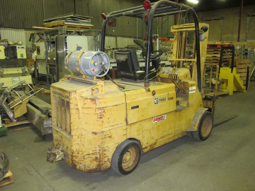 Caterpillar 10,000lb LP forklift. Model: T100C. SN #: 373983. Blades are 60" long. 3 stage mast. Engine type: In-line 6 cylinder RIGGING COST INCLUDED IN PRICE. (Located in Pico Rivera, CA)