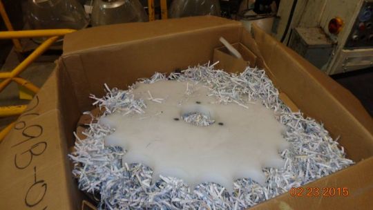 Unused Packaging Automation Indexing Table with box of unused spare wheels