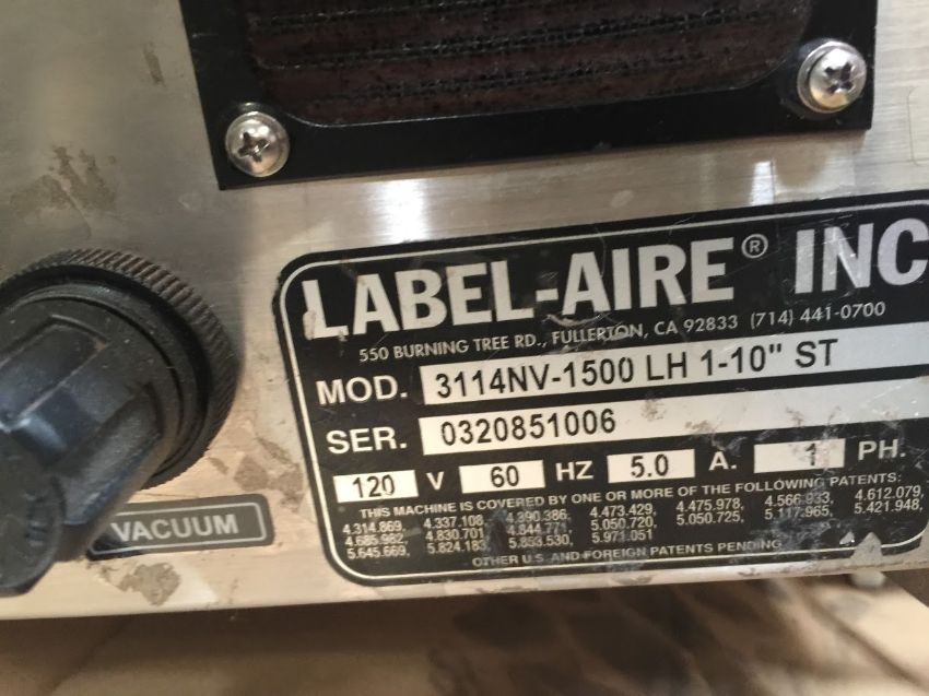 Labelaire Labler Heads, Model 3114NV-1500 LH 1 - 10 in. ST Powers on. SN 0320851006 RIGGING COST INCLUDED IN PRICE. (Located in Pico Rivera, CA)