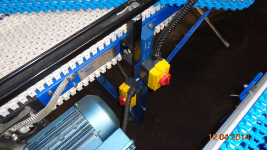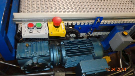 SpanTech Whisper Trax |Dual Belt Conveyor with Powered Diverter, SEW Drive, and control switches. Each belt is 12" wide for a total of 24" belt widths. Overall width about 42", length is about 10 ft. -overall three separate drive system with SEW gear box (LOCATED IN IOWA)***EUSA***