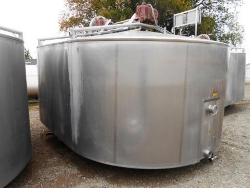Damrow Enclosed Cheese Vat 40,0000 LBS, 3 HP Agitator Motors With Mechanical Speed Control, Variable Sheave Pulleys, RTD Wells, Sanitary Vents, Side Steam Heat, 4" Clamp Outlet, 4" Whey Predraw, D: 15'L x 10'W x 5'H (Located in Wisconsin)***ULLS***