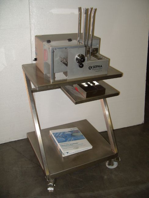 Sepha Press Out Standard Automatic deblistering machine. Complete with multiple sets of tooling. Rated for up to 60 blisters per minute. Maximum pack size of 120mm x 105mm. Wsed for deblistering reject "push-through" blisters in accordance with GMP requirements, primarily for re-use of the reclaimed product. With product specific change parts, all push-through blisters (Al/Al, PVC, PP), childproof as well, with parallel pocket arrangement and a pocket spacing of at least 1mm (or at least 2mm when using the adjustable roll), may be deblistered. Includes all controls and magazine level control sensor. Mounted on mobile, stainless steel work station with integrated switch panel and collection bin. Manual and auto feeding and rated for up to 60 blisters per minute. Mounted on mobile stainless steel workstation with integrated switch panel, magazine level monitor, variable speed controls, reversing swtich for jams. (LOCATED IN AZ) ***CPPS***