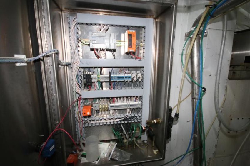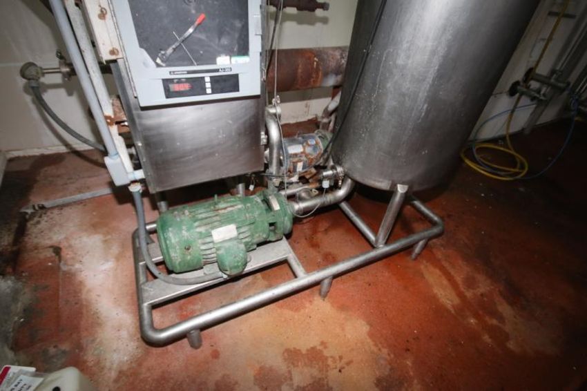 Skid-Mounted CIP System with 90 Gal. S/S Tank, (2) Ampco 5 hp and 10 hp Centrifugal Pumps, Shell and Tube Heat Exchanger, Tri-Clover Air Valves, Allen Bradley MicroLogix 1200 PLC Controls with PanelView 300 Micro Digital Touchpad Display/Read-Out and Anderson AJ-300 Chart Recorder